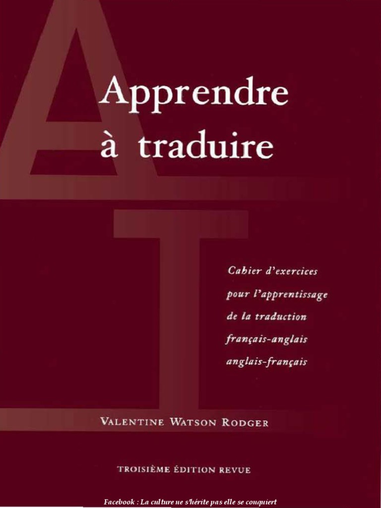 Apprendre A Traduire Cahier D Exercices Pour L Apprentissage De La Traduct Fr Ang Ang Fr Valentine Watson Rodger Traductions Langue Francaise