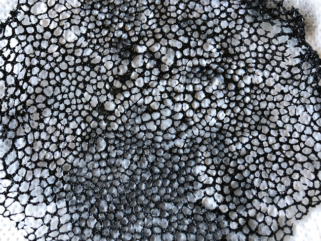 40 g de tomate confite, 1 oignon nouveau, 1 bouquet de 30 g de ciboulette, 1 citron Tuile de tapioca 250 g d’eau, 25 g de tapioca, 1 sachet d’encre de seiche Fleur de sel, sel, piment d. Cabillaud skrei juste cuit, tuile à l’encre de seiche, jeunes pousses d’épinards en vinaigrette d’encornet et câpre à queue, recette de Naoëlle d’Hainaut à découvrir dans Thuriès Gastronomie Magazine numéro 308 d’avril 19. 5 Laisser l’eau s’évaporer;.