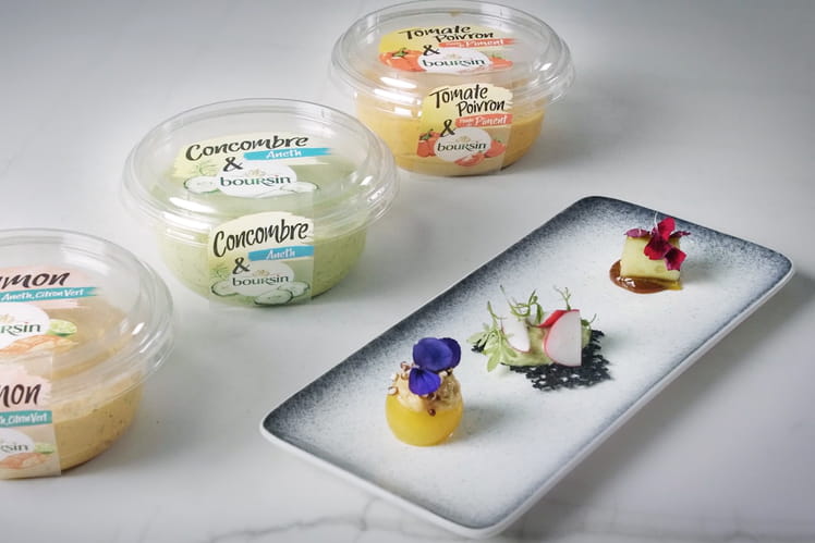 Pour la tuile à l’encre de seiche Faire un point de Boursin® Concombre & Aneth dans une assiette, venir poser dessus la tuile À l’aide d’une cuillère chaude, faire une quenelle de Boursin® à poser pardessus la tuile Disposer sur cette quenelle des quartiers de radis, les chips d’ail et les fleurs comestibles A vous de jouer !. Le risotto est un plat magique On peut l'accommoder de nombreuses façons Comme il me restait deux petits sachets d'encre de seiche que j'avais ramené d'Italie et que je n'avais jamais utilisé j'ai réalisé un risotto L'encre de seiche donne une belle couleur noire nacrées au risotto et apporte un goût délicat légèrement iodé. Elaboration Tuile à l'encre de seiche Dans un mixeur ajouter l’eau, la farine, l’huile en filet (pour émulsionner) puis l'encre de seiche Une fois le mélange réalisé, faire cuire la.