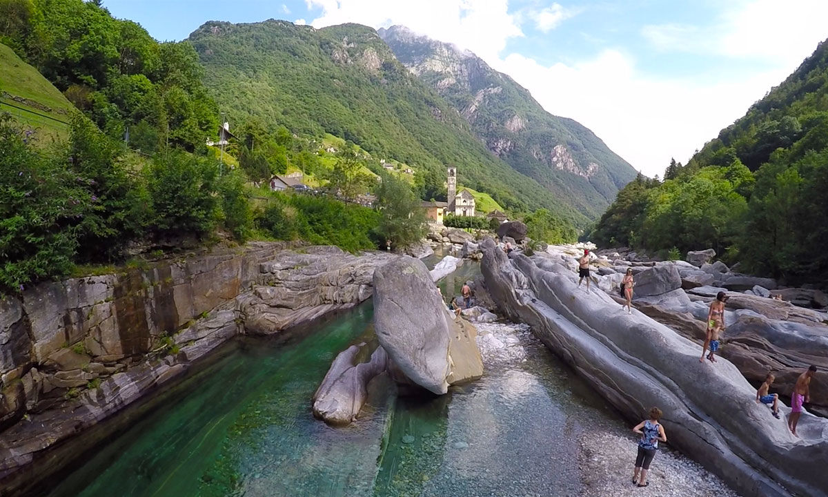The Verzasca River's source is on the peaks above Sonogno from where it follows the namesake valley down to the Corippo fork and flows into the artificial lake The clear emeraldcolored waters and the pristine nature that surrounds it make it an appreciated destination in the summer when the spots with the calmer waters transform into inviting outdoor pools and the shores, especially in the. Ponte dei Salti is a medievalstyle bridge that is located in the Verzasca Valley in southern Switzerland It looks like something right out of a fairytale, this doublearched bridge that spans a crystal clear, aquamarine river. Valle Verzasca – the Ticino’s green heart Idyllically nestled in an imposing mountainscape, the Valle Verzasca (Verzasca valley) is ideal for hiking, mountain biking and relaxing in nature Forming the heart of the valley is the emeraldgreen Verzasca river with its polished gorges and deep pools made for summer bathing.