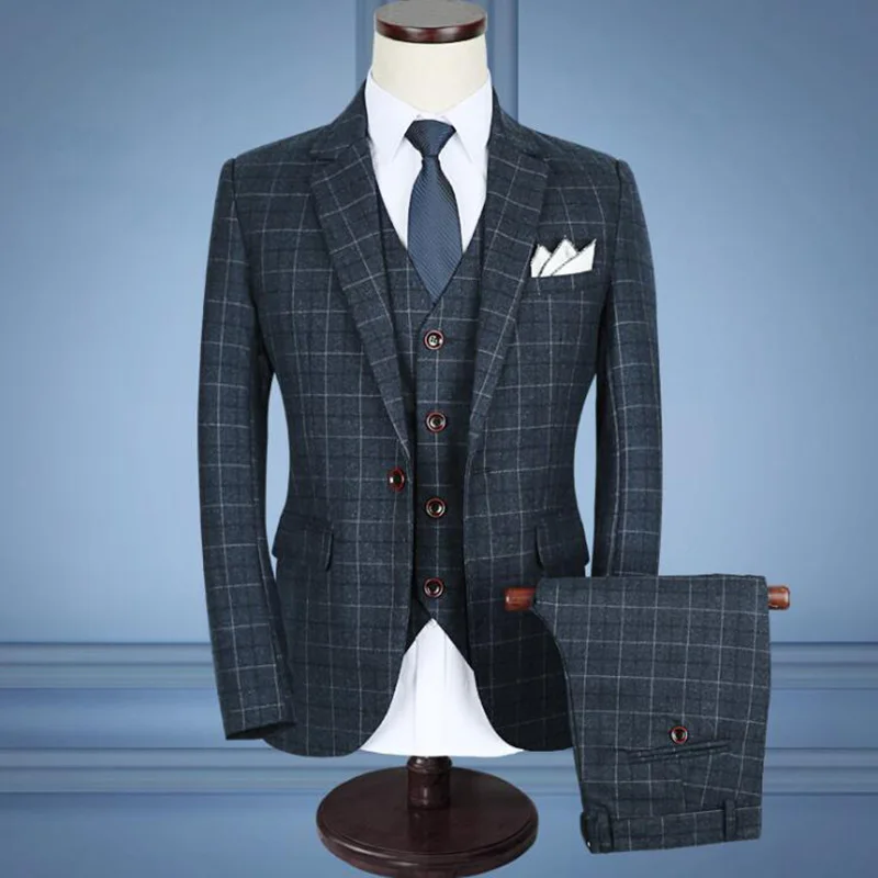 Angleterre Style Hommes D Affaires Costume Costume Bleu A Carreaux Costume Veste Gilet Pantalon Livraison A Repasser Processus Manches Longues M 5xl Aliexpress