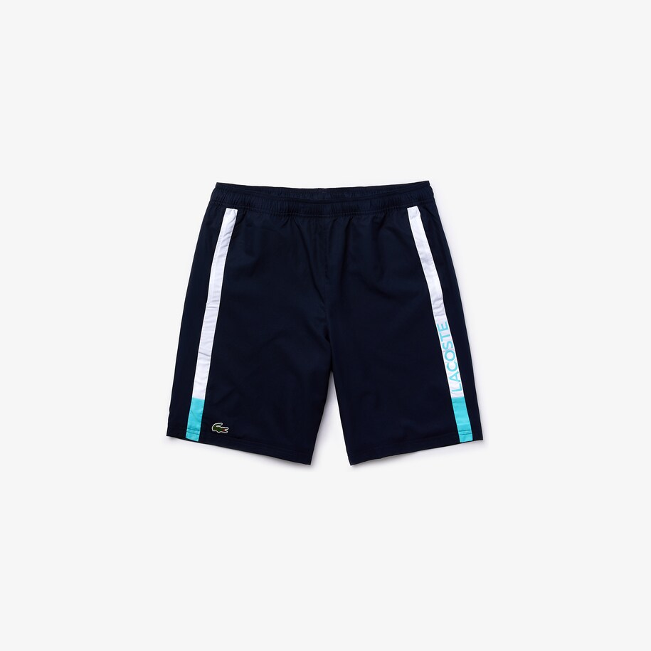 Lacoste Sport Tennisshort Heren Lichtgewicht Met Colorblock Stroken Zwart Blauw Wit Blauw 2 Xs
