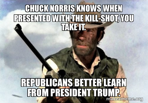 Chuck Norris Knows When Presented With The Kill Shot You Take It Republicans Better Learn From President Trump Make A Meme