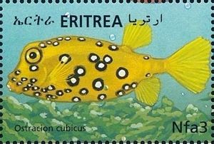 Stamp Yellow Boxfish Ostracion Cubicus Eritrea Fish And Coral Reefs Of The Red Sea Mi Er 234 Sn Er 335e Sg Er 462