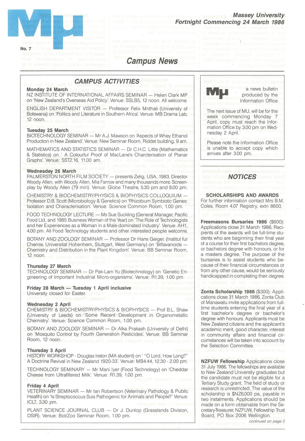 Mu 24 March 1986 Massey University Library