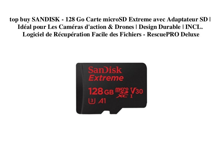 The SanDisk Cloud is a convenient place to save all of your photos, videos, music and documents, making them accessible from any device via the SanDisk Cloud app The SanDisk Cloud app makes it easy to save, access, search and share your content with family and friends. Pour télécharger votre version gratuite du logiciel RescuePRO®, veuillez suivre les instructions cidessous 1 Veuillez sélectionner cidessous le bon reçu avec votre carte mémoire SanDisk Extreme >>>>Astuce sélectionnez selon ce qui est inscrit sur le bon, soit RescuePRO®, soit RescuePRO® Deluxe. Alors que les plateformes de ventes en ligne, notamment chinoises, se multiplient, nous avons tenté l'achat d'une carte microSD Sandisk Extreme Pro 512 Go ve.