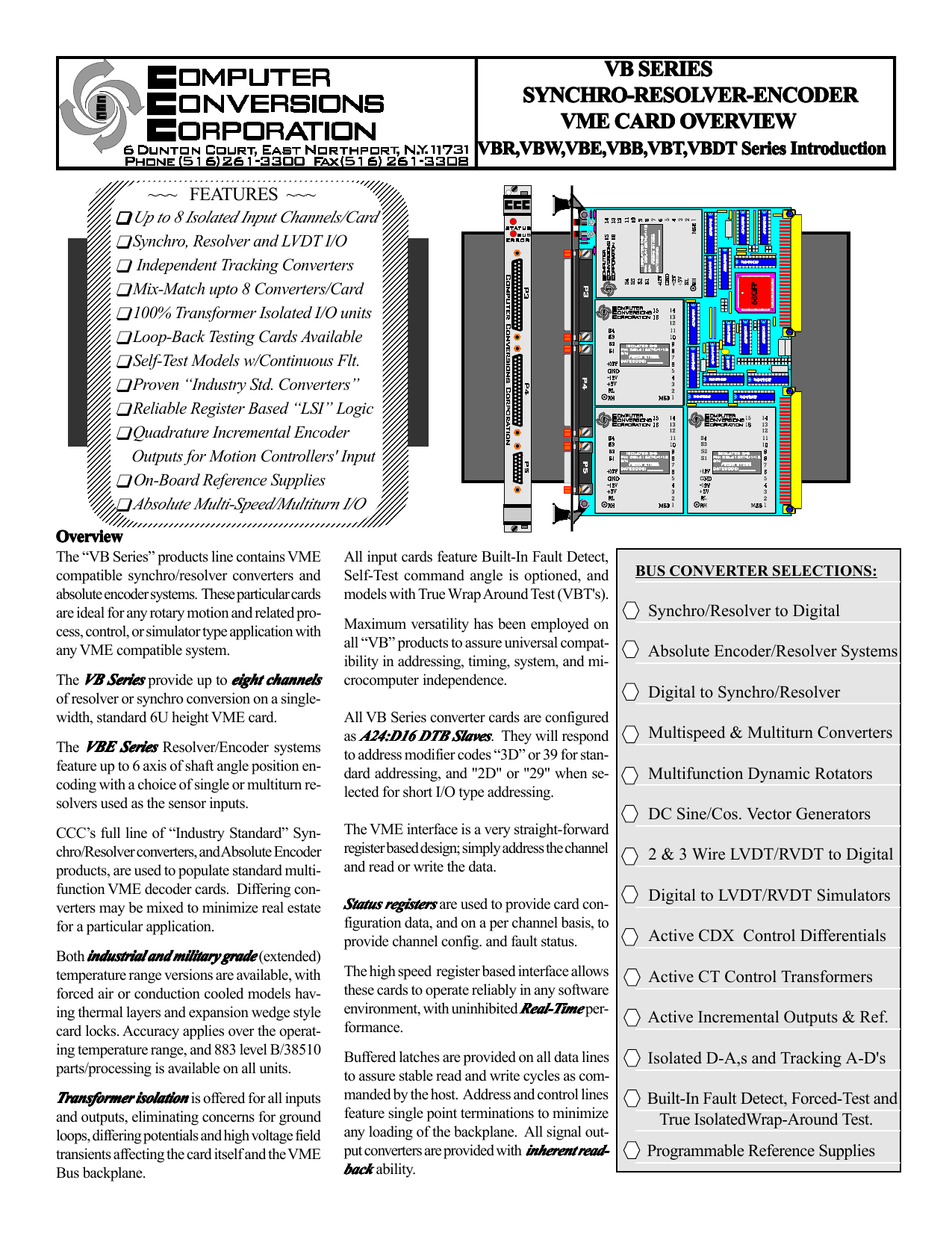 Embedded Synchro Resolver Lvdt I O Cards Computer Conversions Corporation