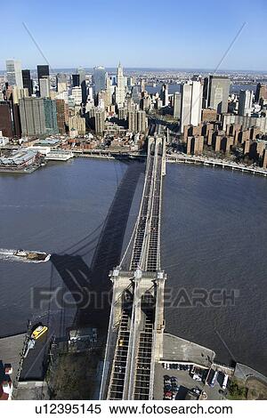 Vue Aerienne De Pont Brooklyn A Riviere Est Et Batiments Manhattan Dans New York City Banques De Photographies U Fotosearch