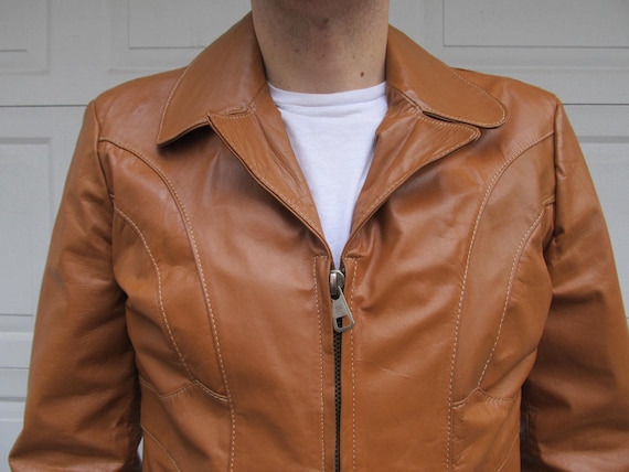 1970s Men S Vintage Leather Jacket Caramel Leather Etsy