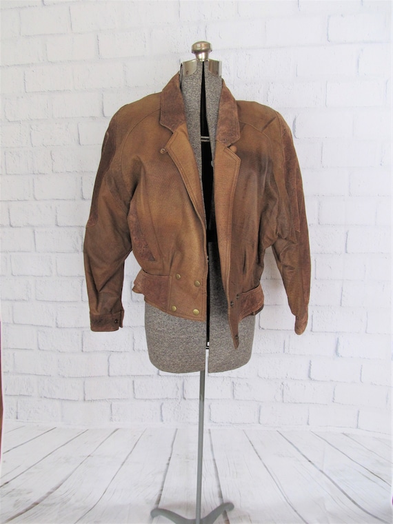 1980s Leather Bomber Jacket Oversized Large Shoulders Vintage Etsy