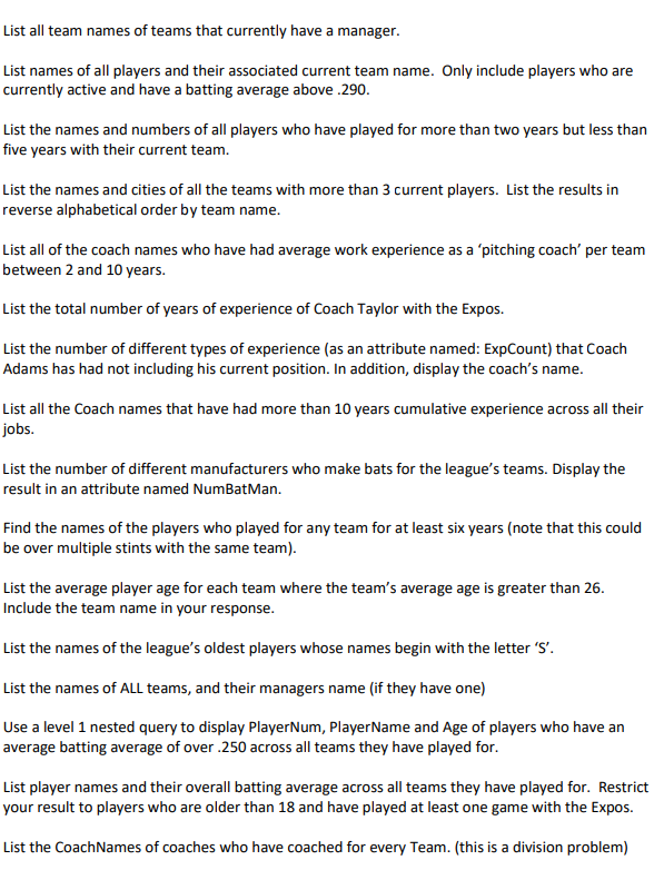 Solved Database Keep Track Of The History Of The Teams Th Chegg Com