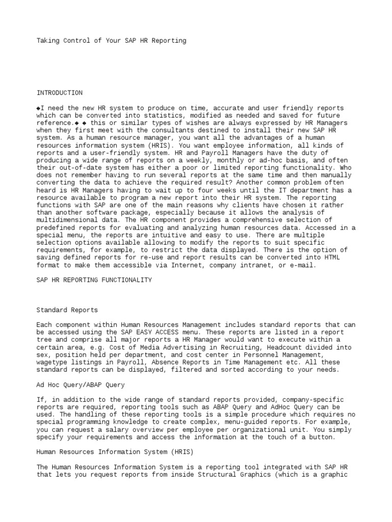 Taking Control Of Your Sap Hr Reporting Databases Business