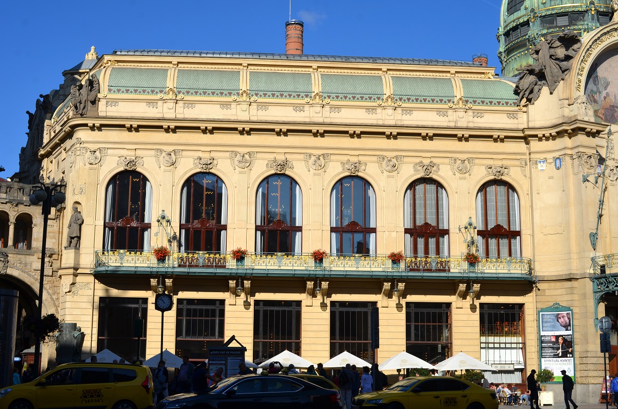 À la Maison Municipale, les architectes, sculpteurs, peintres, mosaïstes, stucateurs et autres décorateurs ont produit une œuvre triomphale devenue le grand symbole de l’Art Nouveau en terre de Bohême. La Maison Municipale L'intérieur du Salon du maire et de la Salle de concert Smetana sont de véritables chefsd'œuvre, décorés par d'excellents artistes tels que Alfons Mucha, Max Švabinský et Mikoláš Aleš. Maison municipale soit une salle de concert et café, restaurant, brasserie La Maison municipale réunit une salle de concerts de 1300 places dédiée à Smetana, il s’agit pour certains d’une des plus belles salles de concert au monde.
