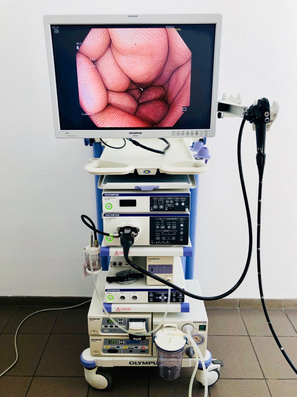 Colonne D Endoscopie Digestive Olympus Avec Colonoscope Et Gastroscope