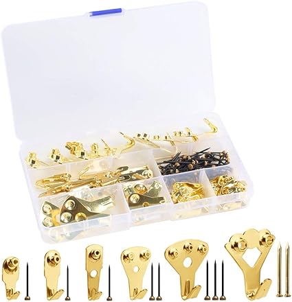 Xhxstore 130pcs Accroche Tableau Metallique Fixation Cadre Con Ongles Crochet Tableau Pour Cadre Photo Miroir Horloge D Or 6 Tailles Amazon Fr Bricolage