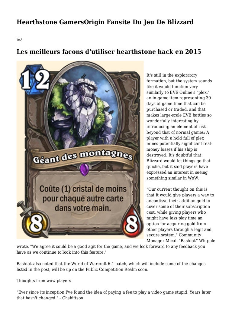 Hearthstone Gamersorigin Fansite Du Jeu De Blizzard