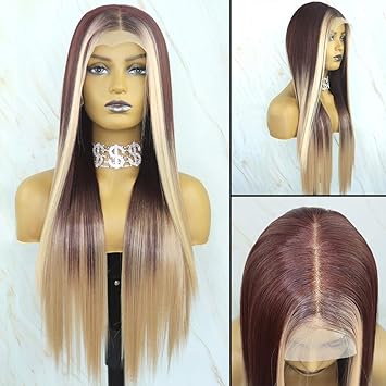 Arc En Neige Blond Brun Highlight Synthetique Lace Front Wigs Avec Bebe Cheveux Pour Les Femmes Noires Futura Resistant A La Chaleur Glueless Lace Front Wigs Longue Ligne Droite Amazon Fr Beaute Et Parfum