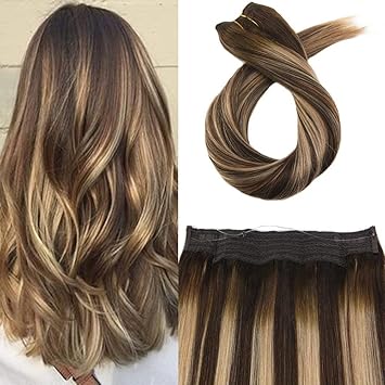 Moresoo Pouces Chocolate Braun To Caramel Blonde Highlights With Chocolate Braun Halo Double Weft Bresilienne Highlights 100 Remy Flip On Cheveux Humain 100g Amazon Fr Beaute Et Parfum