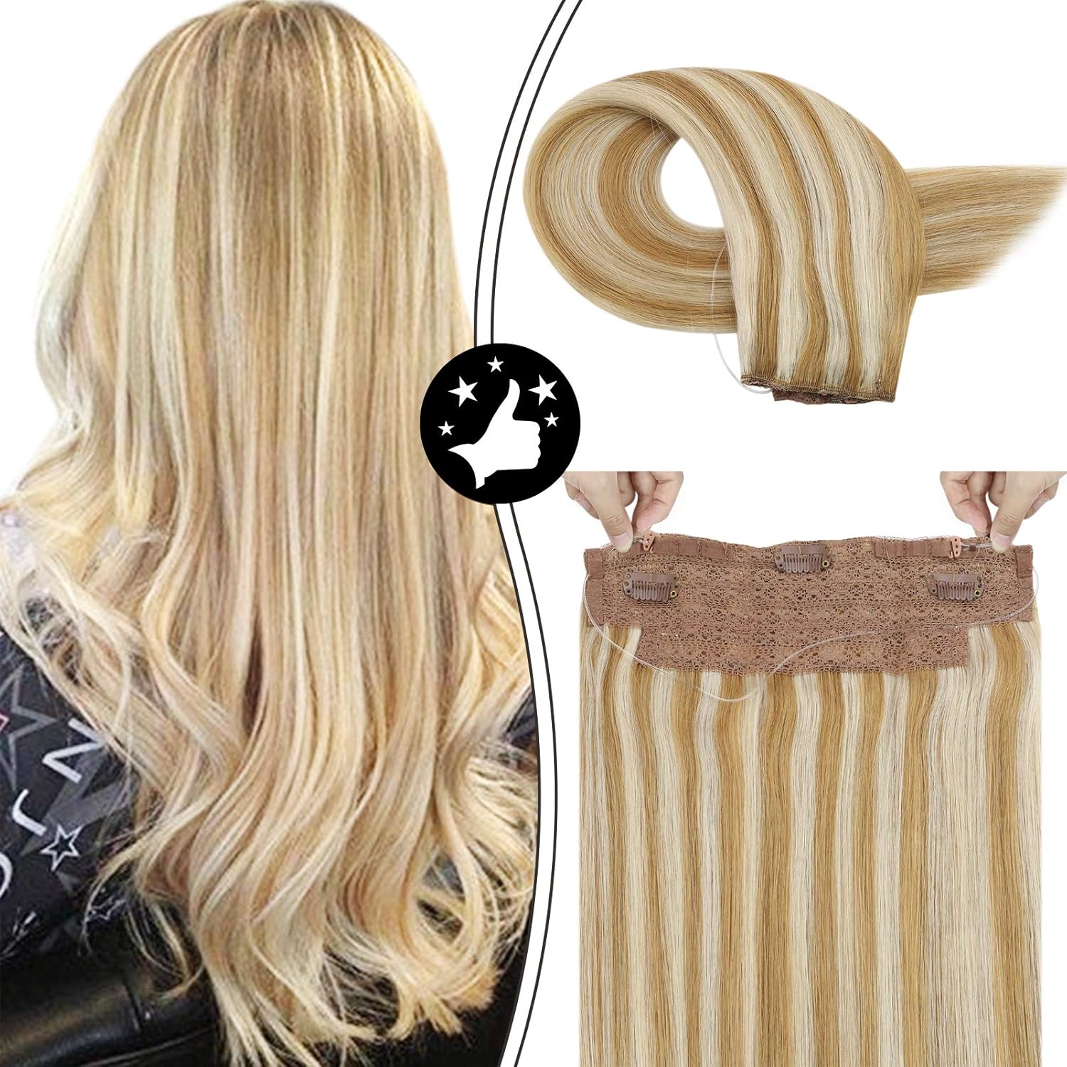 Youngsee 12pouces 30cm Remy Blond Halo Cheveux Naturel Extensions Blond Miel Fonce Avec Blond Ombre Highlight Une Piece Halo Secret Varis Lisse Cheveux Humains Avec Clips 80gramme Amazon Fr Beaute Et Parfum