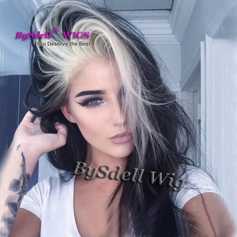 Acheter Longs Cheveux Raides Et Lisses Point Culminant Blonde Perruque De Couleur Noir Fonce Perruques Synthetiques Synthetiques Resistant A La Chaleur Devant De Dentelle Pour La Mode Noir De 41 32 Du
