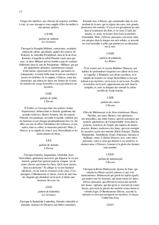 Hymnes Orphiques Traduction Leconte De Lisle Http Www Projethom