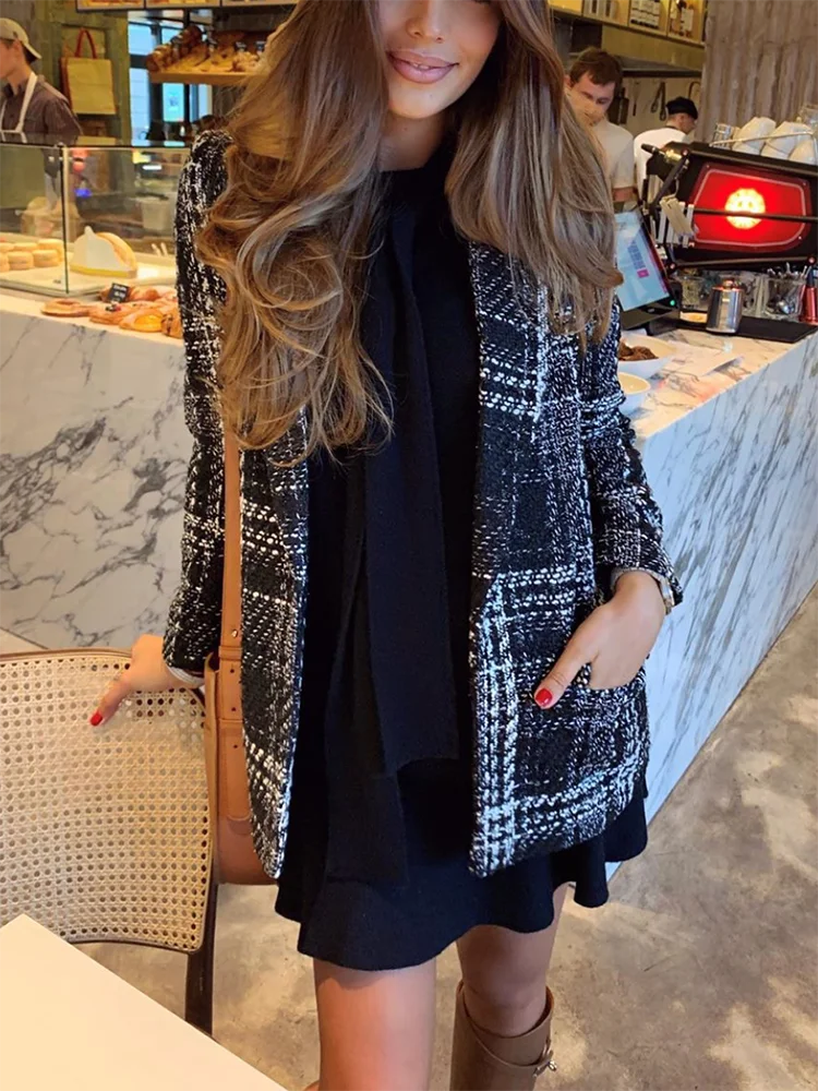 Black Plaid Tweed Coat Women Blazers Mujer Elegant Veste Femme Sexy Ropa Mujer Basic Jackets Coat Autumn Winter Vestio Za Trench Aliexpress