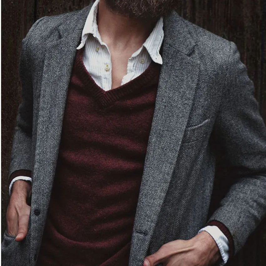 Veste De Blazer En Tweed Grise A Chevrons Veste De Costume En Tweed Decontracte Personnalisee 18 Aliexpress