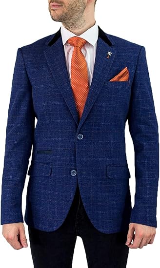 Cavani Hommes Kaiser Coupe Slim Tweed Veste Bleu Amazon Fr Vetements Et Accessoires
