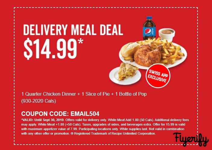 Swiss Chalet Canada Delivery Meal Deals Coupons September 16 30 Canada