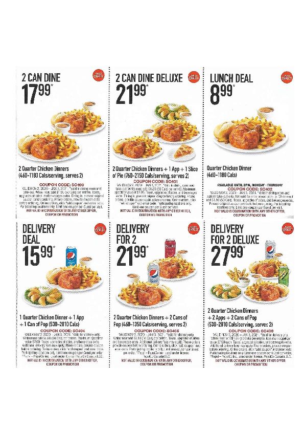 Swiss Chalet Coupons 2 Quarter Chicken Dinners For 18 Dine In Or 2 Quarter Chicken Dinners 2 Pop For 23 Delivery Until Jan 05 Eboss Canada
