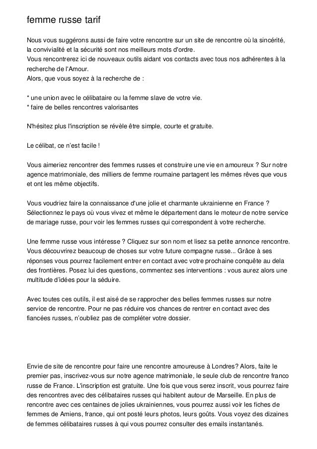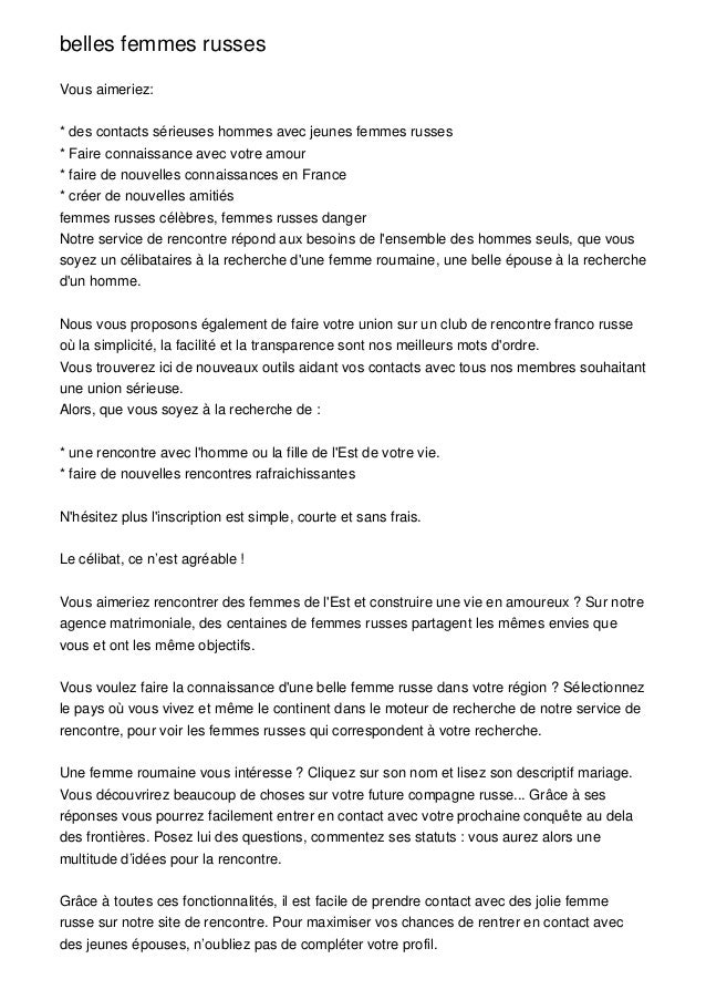 Russe \ˈʀʊsə\ masculin (pour une femme on dit Russin) Russe (personne);. De plus en plus de femmes russes, quelles vous pouvez trouver sur https il ne quittera ni ses enfants ni sa femme au nom d’une jeune beauté Les Russes choisissent des hommes attentifs et attentionnés Il est important pour eux qu’ils soient bien soignés. CQMI N°1Rencontres Femmes Russes et Ukrainiennes 500 Vidéos des adhérentes de l'Europe de l'Est Voyages Romantiques en groupe et Individuels sont organisés à Kiev tous les 2 mois.