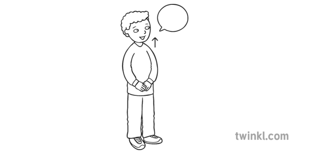 Boy Holding Head Up When Speaking Eyes Open Black And White Illustration