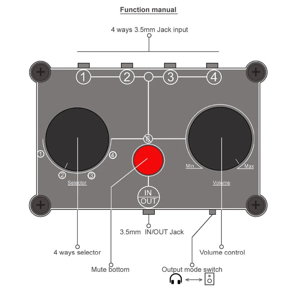 4 Port 3 5mm Stereo Audio Switcher Speaker Headphone Manual Selector Sharing Box Audio Cables Interconnects