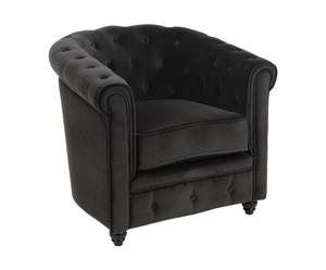 Fauteuil Chesterfield Thun Velours Noir Installez vous dans le confort Anglais avec ce fauteuil Chesterfield velours Noir élégant alliant le confort et le design élégant So British Dimensions L111 x P x H72 cm Poids 33 kg Hauteur assise 43 cm.