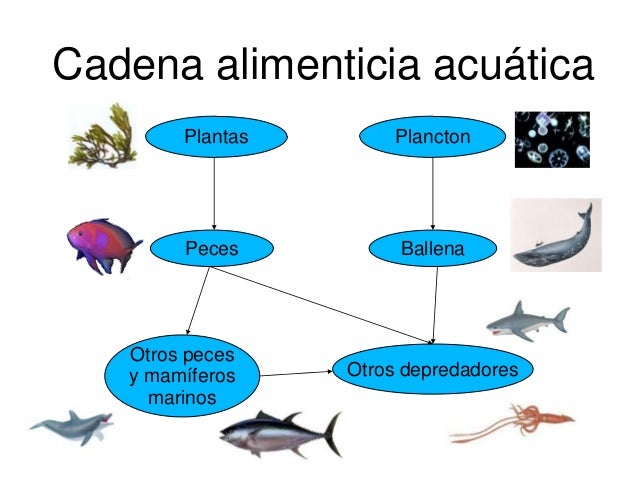 También conocidacomo cadena alimenticia o cadena alimentaria, es la corriente de energía y nutrientes que se establece entre las distintas especies de un ecosistema en relación con su nutrición Cadena Alimenticia Acuatica En el mar existen una cierta cantidad de algas que utilizando radiciones solares, transforman las sales minerales y. La cadena alimentaria es el proceso de transferencia de nutrientes entre las diferentes especies que componen la comunidad biológica Una cadena de gráficos, quién alimenta, que está en la naturaleza También llamada cadena trefífica, la cadena alimenticia muestra el flujo de nutrientes y energía entre diferentes especies de su dieta. La cadena trófica consiste en la descripción de la cadena de alimentos de los seres vivos que habitan en el mar Para iniciar, presentemos los eslabones de la cadena alimenticia acuática Primer eslabón aquí se encuentran los productores, que son las algas y el plancton, llamadas en forma general como fitoplancton.