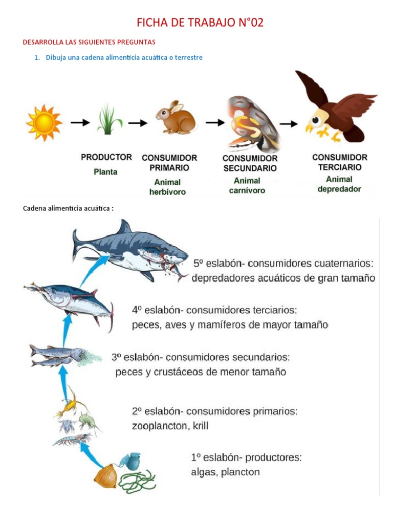 Ficha De Trabajo N 02 1 Dibuja Una Cadena Alimenticia Acuatica O Terrestre