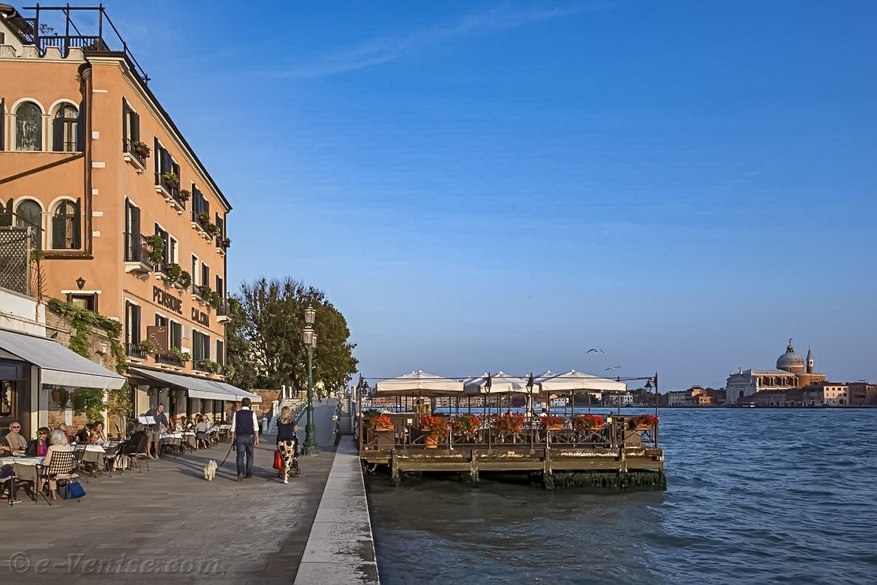 Situated on the Zattere – the wide pavement on the Venice shore of the Giudecca canal – La Calcina offers views second only to those over the Grand Canal, some people would say better.