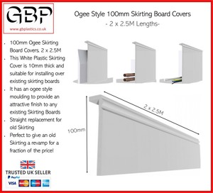 Wht Ogee Upvc Skirting Board Cover Various Depths 2 5m Length Acc Collect Only Ebay