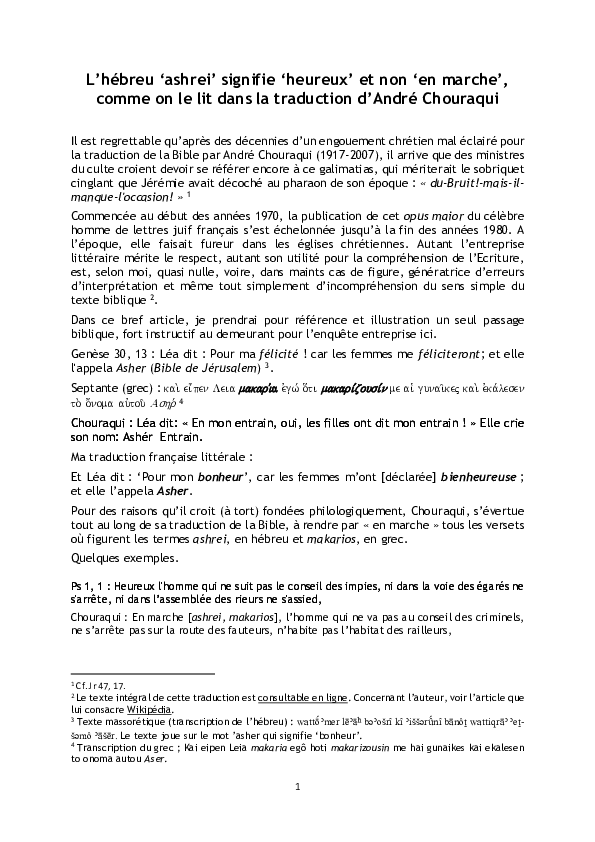 Pdf L Hebreu Ashrei Signifie Heureux Et Non En Marche Comme On Le Lit Dans La Traduction D Andre Chouraqui M R Macina Academia Edu