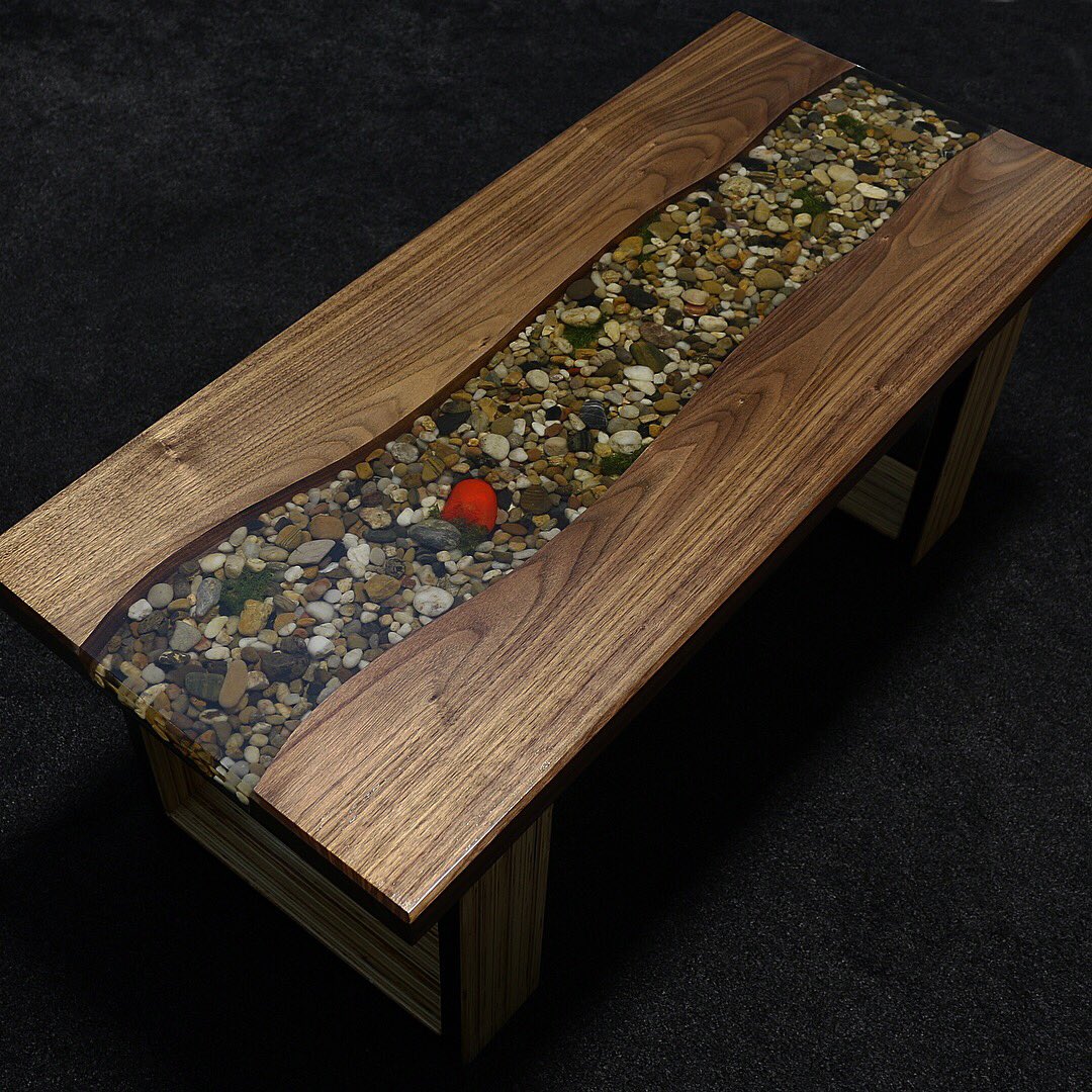 Visual Clarity Custom Woodworking Sneak Peak Of The Rock River Bed Coffee Table Can T Wait To Finish It River Rocks Wood Woodworking Coffeetable Exopxy Maple Hairpins Daydreaming Visualclaritycustomwoodworking Facebook