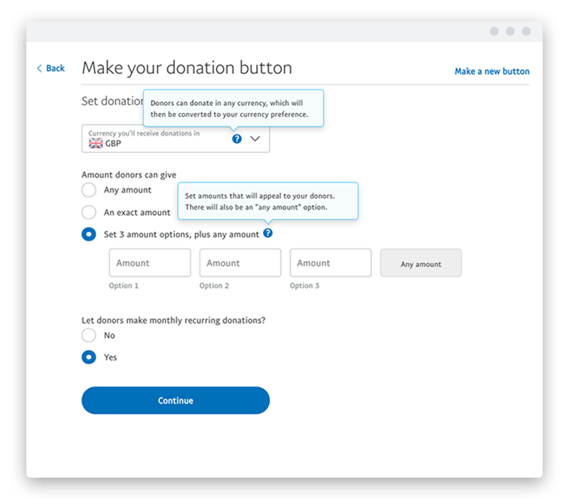 Click Integration, and then click Button Generator Under Create 'Donate with Amazon' widget, click Create Choose the donation widget that best fits the options you want to offer donors Choose a preselected donation amount or enter a custom amount (recommended) Enter any donation amount of their choosing Donate a predefined amount. Create a Donate button Open the PayPal button creation page Step 1 Choose your button style Step 2 Add organization name and logo Step 3 Set donation amounts Step 4 Adjust optional settings. A donation button is the call to action for any nonprofit — it’s the nonprofit version of a buy now button The most frustrating thing to a new user is locating your donation button Don’t hide your donation button on your site It doesn’t look like begging;.
