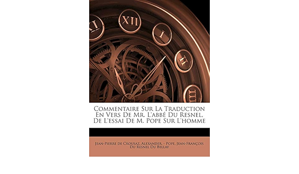 Commentaire Sur La Traduction En Vers De Mr L Abbe Du Resnel De L Essai De M Pope Sur L Homme French Edition Crousaz Jean Pierre De Alexander Pope Jean Francois Du Resnel Du Bellay