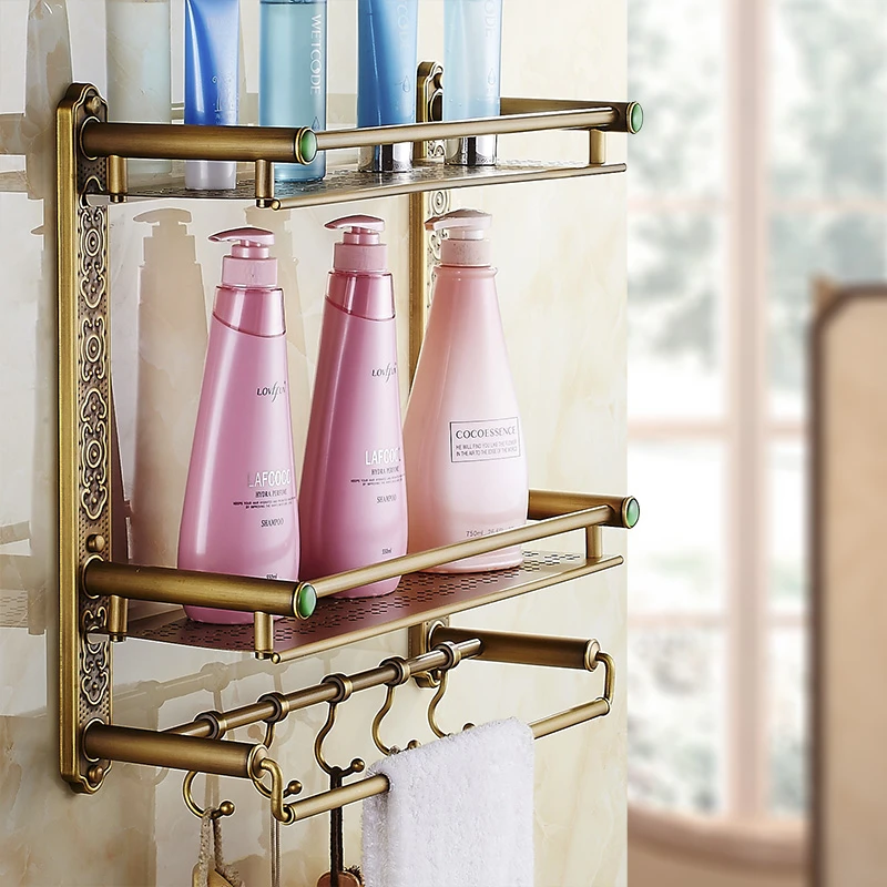 Bathroom Shelves Wall Mounted Brass 2 Tier Storage Basket Cosmetic With Robe Hook Ssl S49 Bathroom Shelf Wall Bathroom Shelvesbathroom Wall Shelf Aliexpress