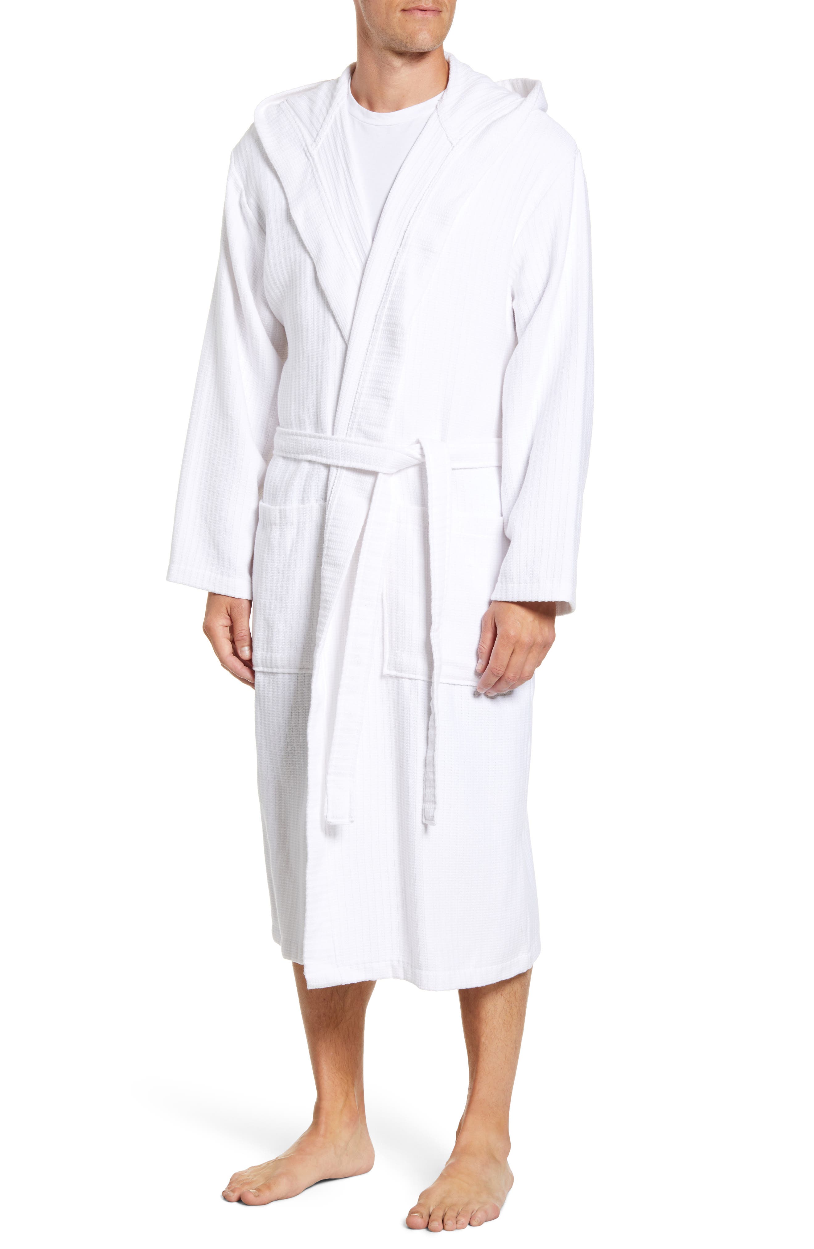 Daniel Buchler Robe Basket Weave Hooded Cotton Terry Men S Robe White Size M L Ebay