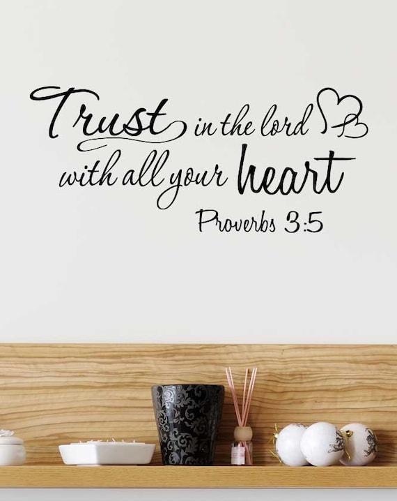 Amazon Com Trust In The Lord With All Your Heart Proverbs 3 5 6 Vinyl Lettering Wall Decal Sticker 21 H X 38 L Black Arts Crafts Sewing