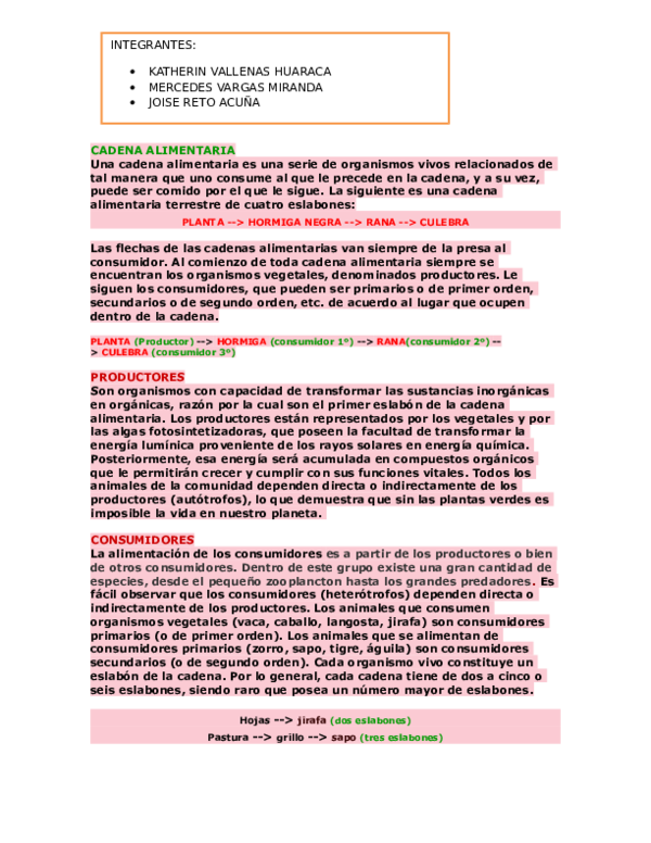 Tipos De Cadena Alimenticia La Cadena Alimenticia Clarissa Ramirez 2 5nº24