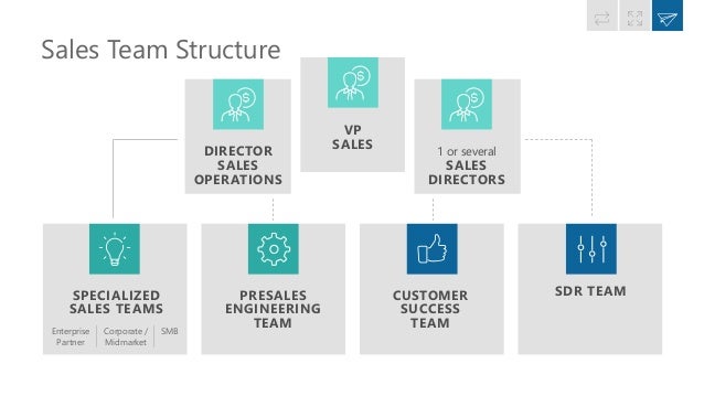 A team structure anchored with a chief enablement officer makes sense in organizations with a large enablement team, spanning mutliple regions, sales disciplines, and gotomarket teams In such a case, the chief enablement officer serves as the single authority to manage the strategies of all enablement subteams while maintaining alignment with the holistic company vision. General Manager – Sales;. The simplest sales team structure, this has a leaderdriven team and is known as the island Although sometimes considered oldfashioned, the island model can be found in many organizations today For example, many harddriven sales organizations with dedicated sales representatives still use this approach This structure is often adopted by.