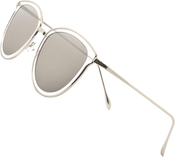 Seeyou Lunette De Soleil Pour Femme Anti Uv Uv400 Ronde Multicolore Branche En Metal Verre Gris Blanche Amazon Fr Vetements Et Accessoires
