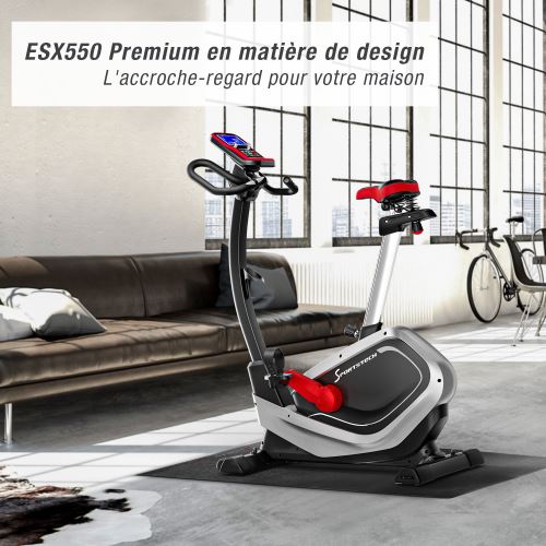 Vélo d'appartement Sportstech ESX550 Premium Ergomètre design avec écran et application multijoueurs infos et prix Achetez sur Fnaccom et faites vous livrer chez vous ou bénéficiez du retrait en magasin. Vélo d'appartement pliant avec 8 niveaux de résistance pour le fitness à domicile;. Tout simplement parce qu’il est vendu à un excellent rapport qualité/prix, qu’il possède un design moderne, et qu’il offre de nombreuses possibilités d’entraînement, et ce, convenant aux différents niveaux des utilisateurs.