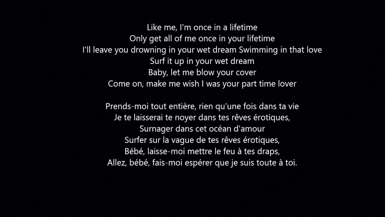 A translated version of a text. Je regrette de ne pas le savoir. Traduction Lemonade - Internet Money Don Toliver Xanny bars, suicide door, brand new bag College girls give a nigga head in my Rafs.